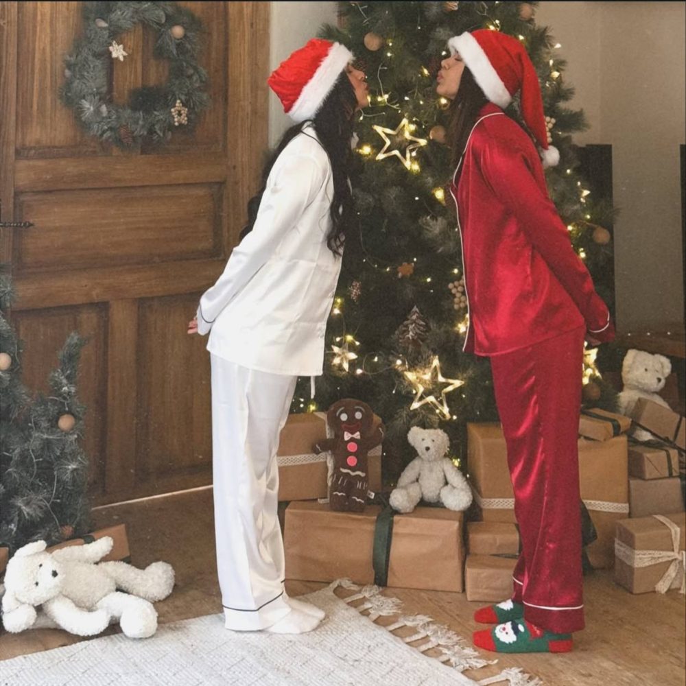 بلوز استین بلند و شلوار قرمز با مغزی سفید